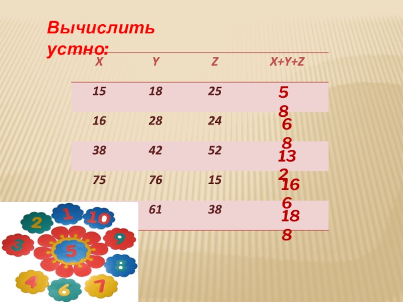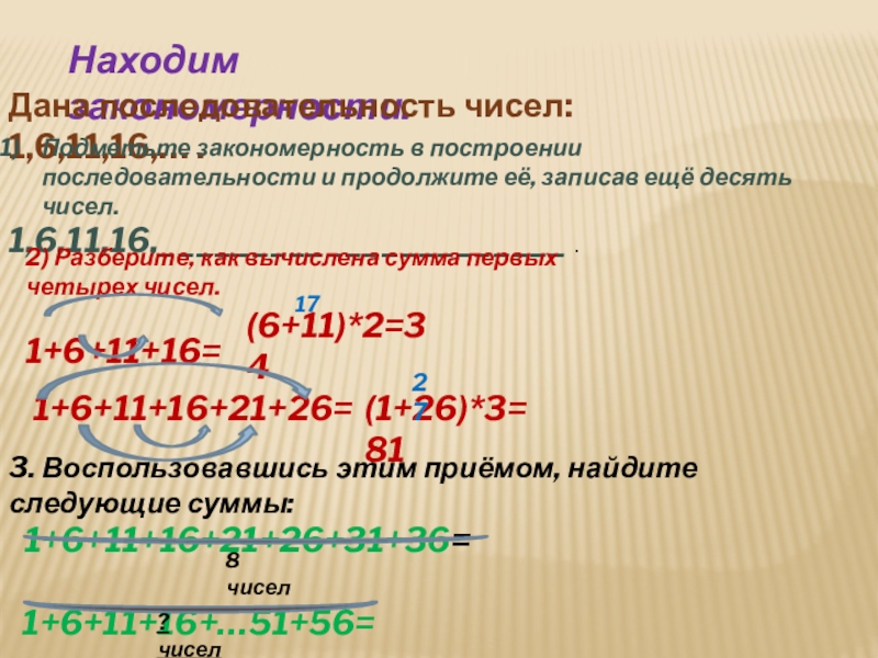 2) Разберите, как вычислена сумма первых четырех чисел.