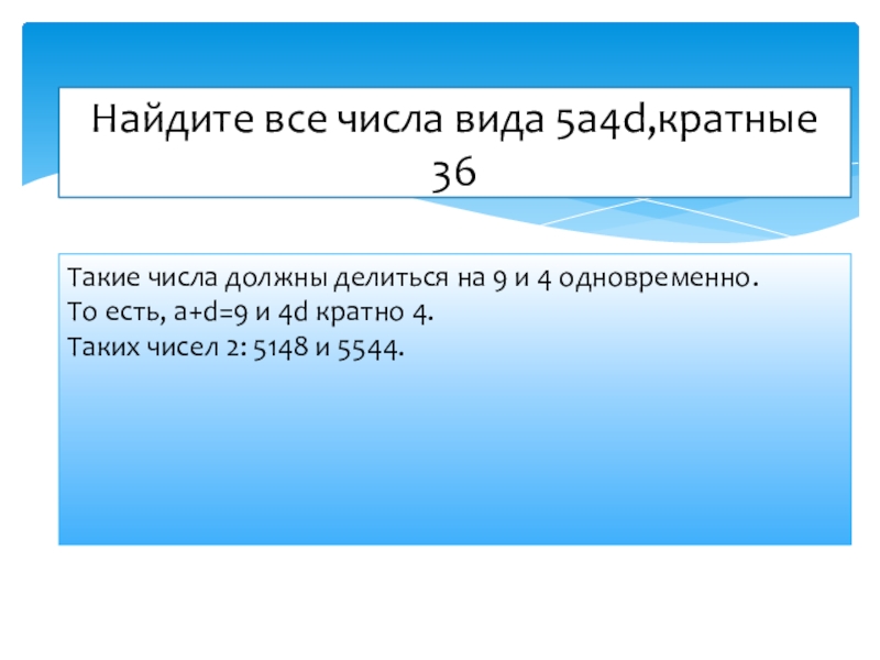 Найдите все числа вида 5a4d,кратные 36
