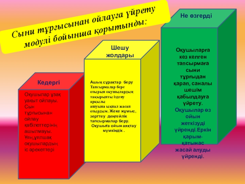 - Сұрақтар шешімін табу- жаңа бір нәрсе тудыру;