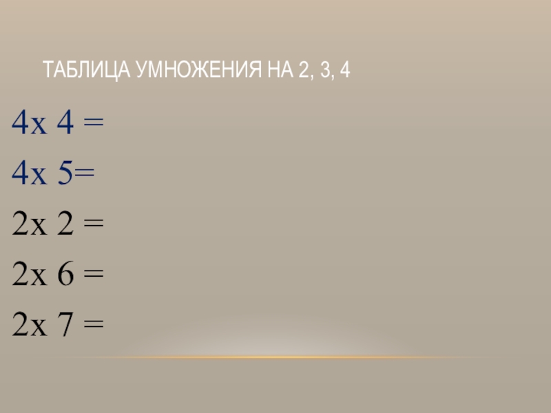 Таблица умножения на 2, 3, 44x 4 =4x 5=2x 2 =2x 6 =2x 7 =3x 5 =4x