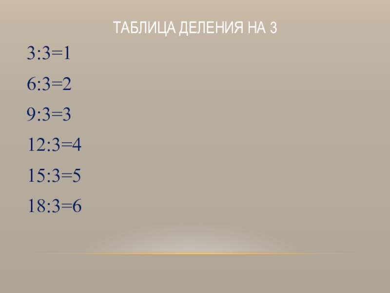 Таблица деления на 3 3:3=6:3=9:3=12:3=15:3=18:3=