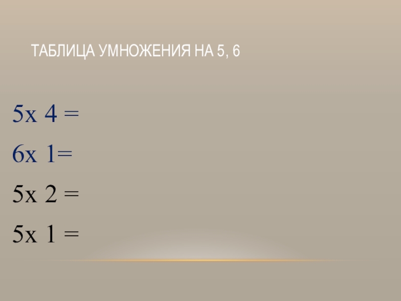 Таблица умножения на 5, 65x 4 =6x 1=5x 2 =5x 1 =6x 3 =5x 3 =6x 2