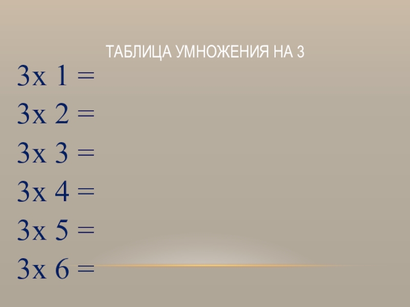 Таблица Умножения на 33x 1 = 3x 2 =3x 3 =3x 4 =3x 5 =3x 6 =