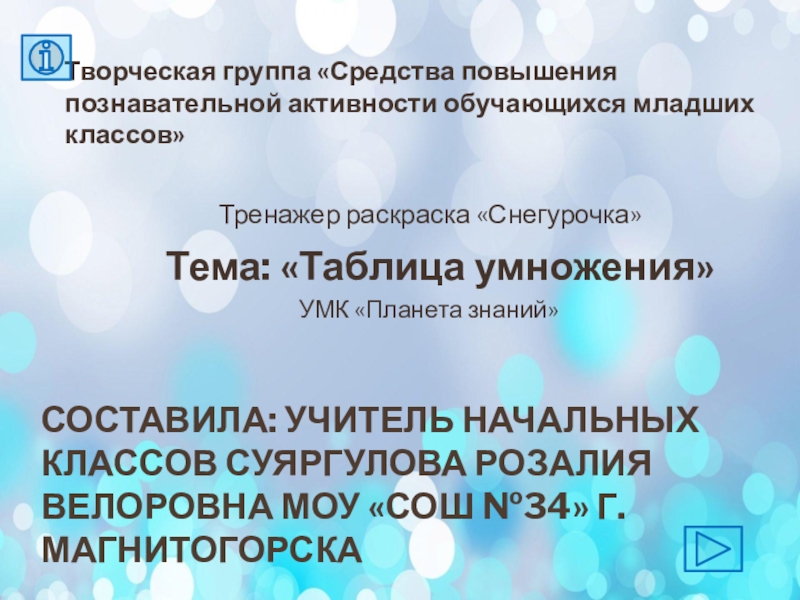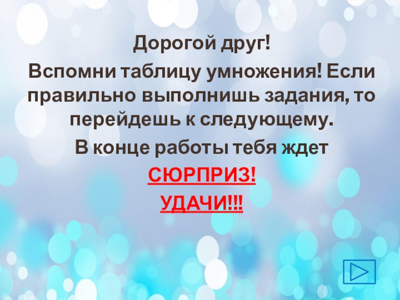 Тема: «Таблица умножения»