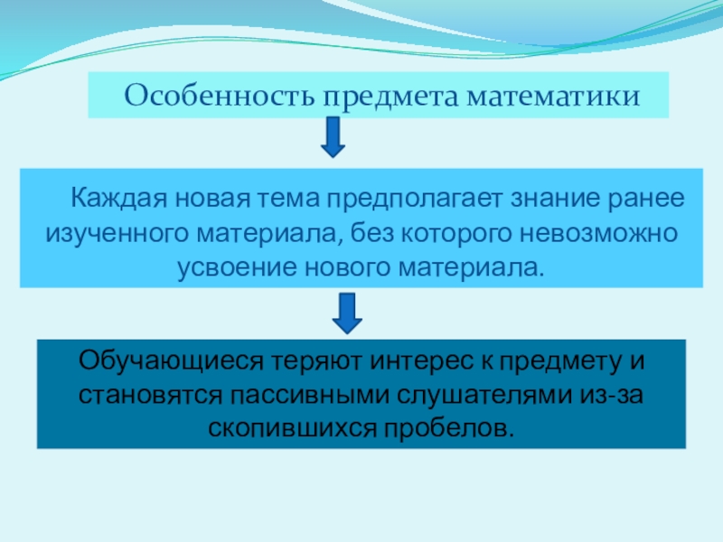 Обучающиеся теряют интерес к предмету и становятся пассивными слушателями из-за скопившихся пробелов.