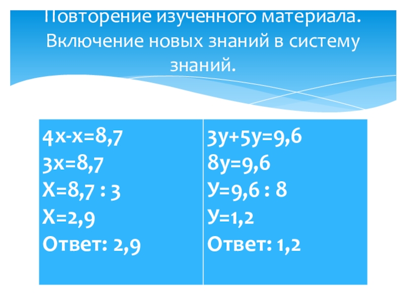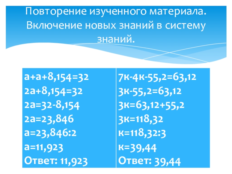 Повторение изученного материала. Включение новых знаний в систему знаний.