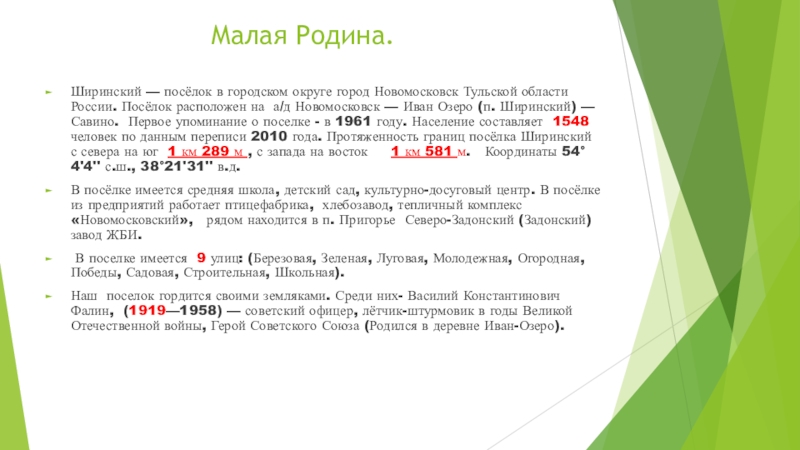 Ширинский — посёлок в городском округе город Новомосковск Тульской области России. Посёлок расположен на а/д Новомосковск — Иван Озеро (п. Ширинский) — Савино. Первое упоминание о поселке - в 1961 году. Население составляет 1548 человек по данным переписи 2010 года. Протяженность границ посёлка Ширинский с севера на юг 1 км 289 м , с запада на восток 1 км 581 м. Координаты 54°4'4'' с.ш., 38°21'31'' в.д.