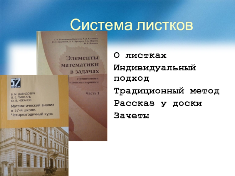 Это сайт презентаций, где можно хранить и обмениваться своими презентациями, докладами, проектами, шаблонами в формате PowerPoint с другими пользователями. Мы помогаем школьникам, студентам, учителям, преподавателям хранить и обмениваться учебными материалами.