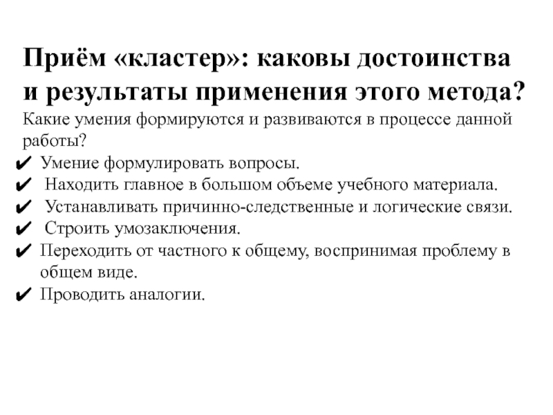 Слайд 24Приём «кластер»: каковы достоинства и результаты применения этого метода?