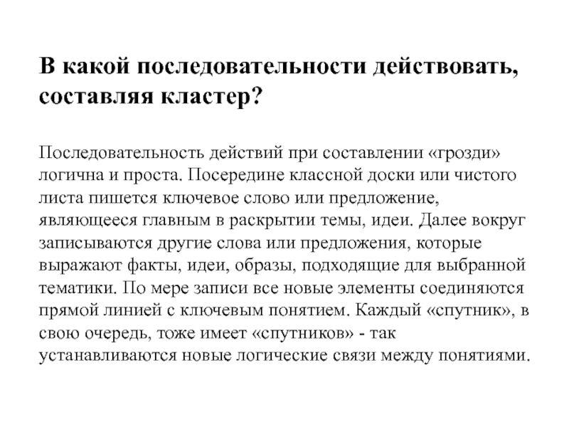 Слайд 11В какой последовательности действовать, составляя кластер?
