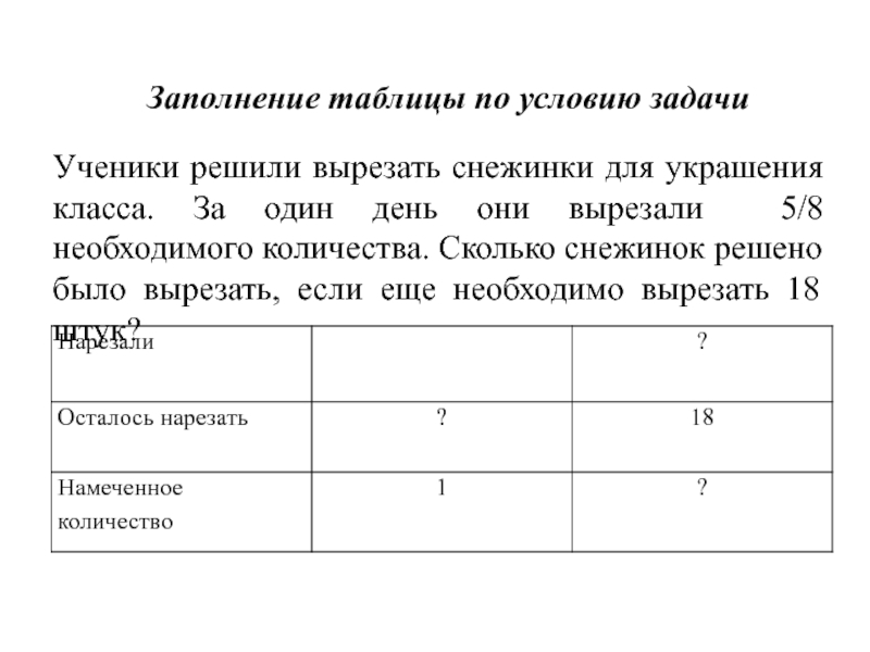 За один день они вырезали 5/8 необходимого количества. Сколько снежинок решено было вырезать, если еще необходимо вырезать 18 штук?