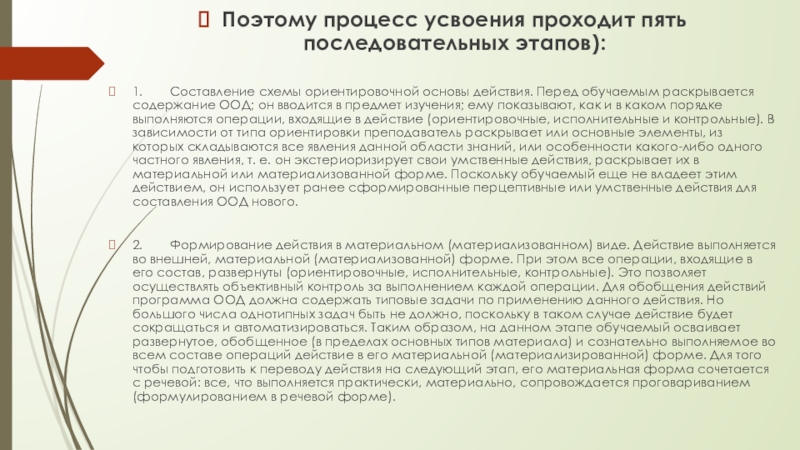 Слайд 5Поэтому процесс усвоения проходит пять последовательных этапов):