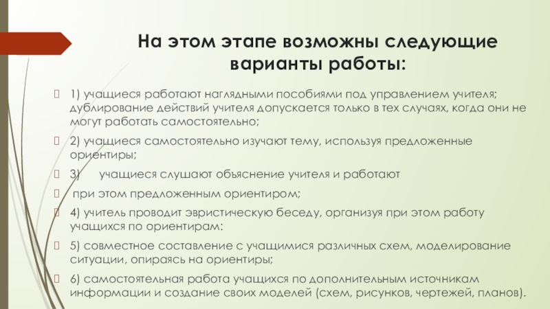 Слайд 15На этом этапе возможны следующие варианты работы: