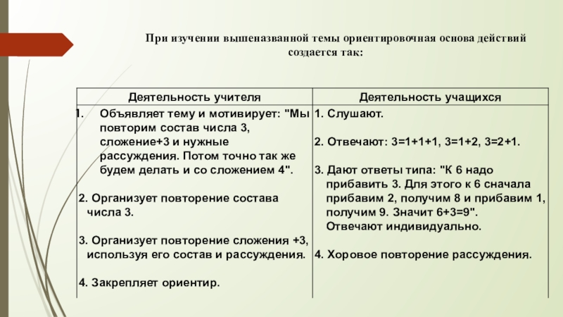 Слайд 11При изучении вышеназванной темы ориентировочная основа действий создается так: