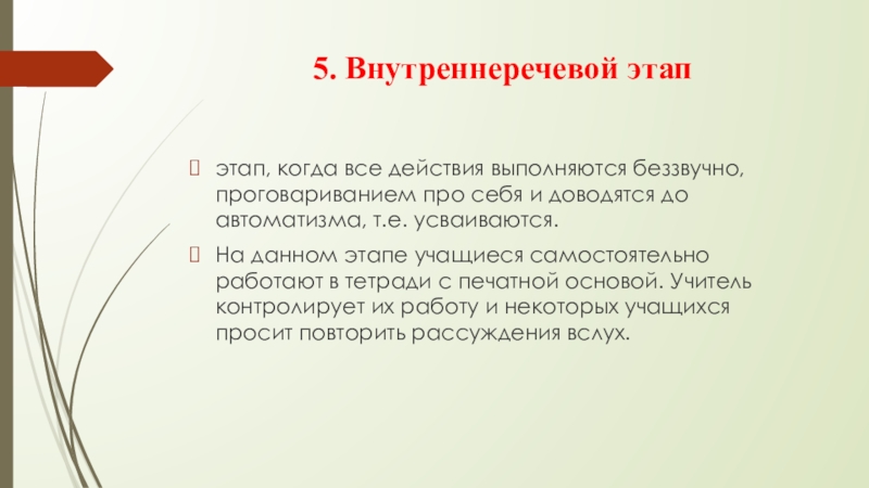 этап, когда все действия выполняются беззвучно, проговариванием про себя