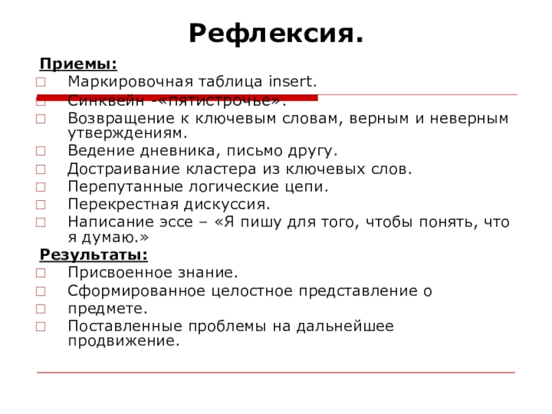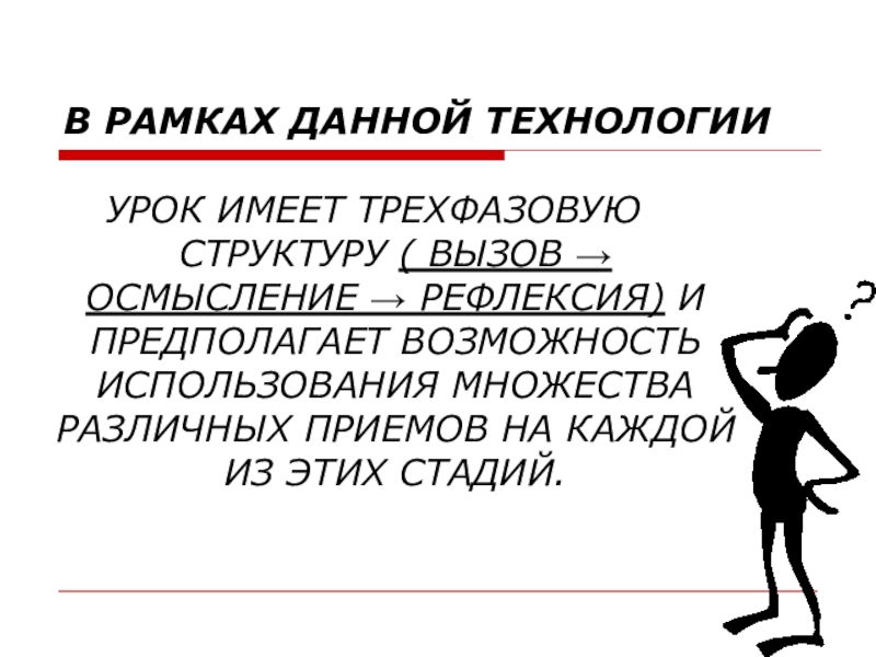 → РЕФЛЕКСИЯ) И ПРЕДПОЛАГАЕТ ВОЗМОЖНОСТЬ ИСПОЛЬЗОВАНИЯ МНОЖЕСТВА РАЗЛИЧНЫХ ПРИЕМОВ НА КАЖДОЙ ИЗ ЭТИХ СТАДИЙ.
