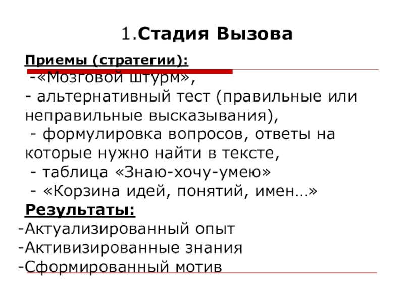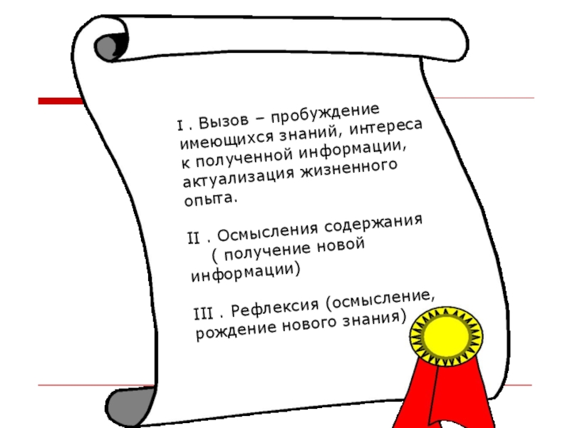 Слайд 10I . Вызов – пробуждение имеющихся знаний, интереса к полученной информации,