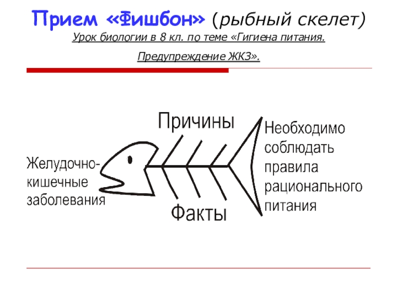 Слайд 17Прием «Фишбон» (рыбный скелет) Урок биологии в 8 кл. по теме