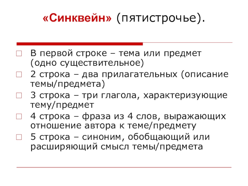 4 строка – фраза из 4 слов, выражающих отношение автора к теме/предмету