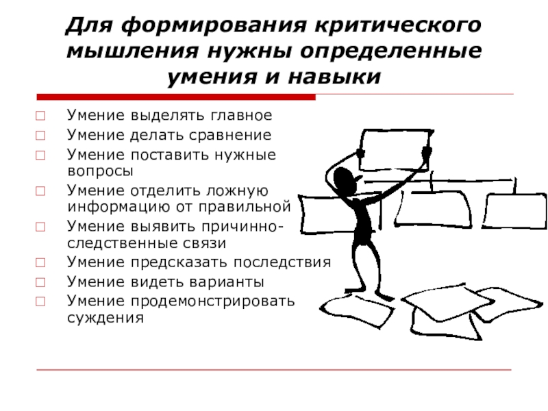 Слайд 7Для формирования критического мышления нужны определенные умения и навыки
