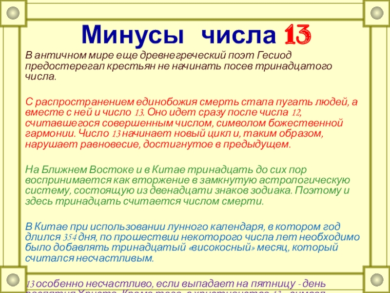 Слайд 24Минусы числа 13