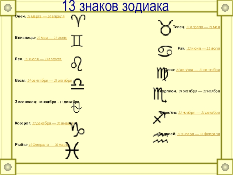 13 знаков зодиака