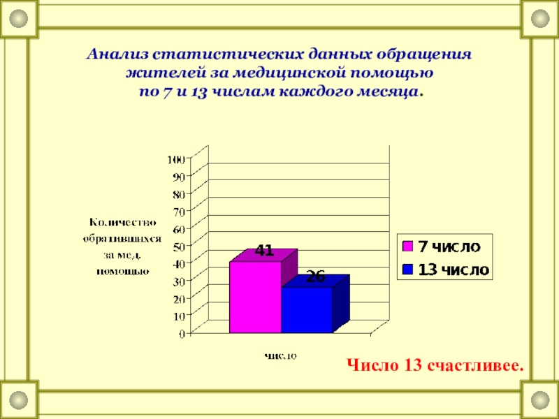 Выяснить, правда ли что число 13 является страшным, а с числом 7 связаны только хорошие события.