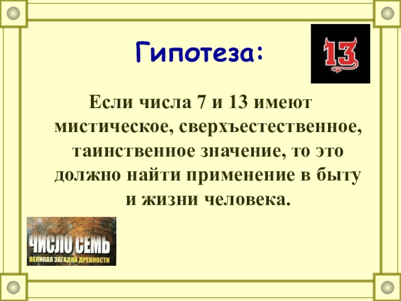 Если числа 7 и 13 имеют мистическое, сверхъестественное, таинственное значение, то