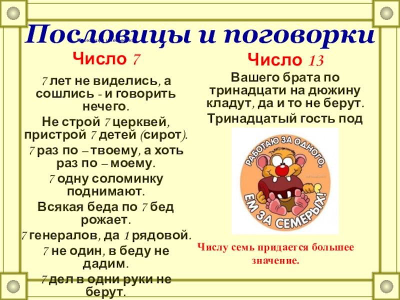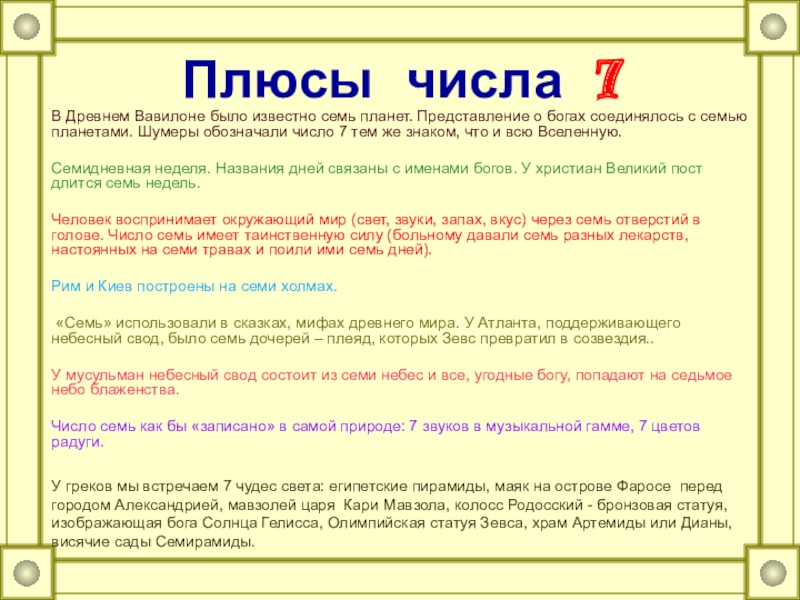 Слайд 19Плюсы числа 7