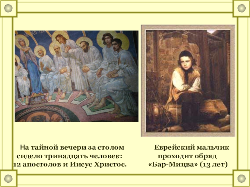 12 апостолов и Иисус Христос. «Бар-Мицва» (13 лет)