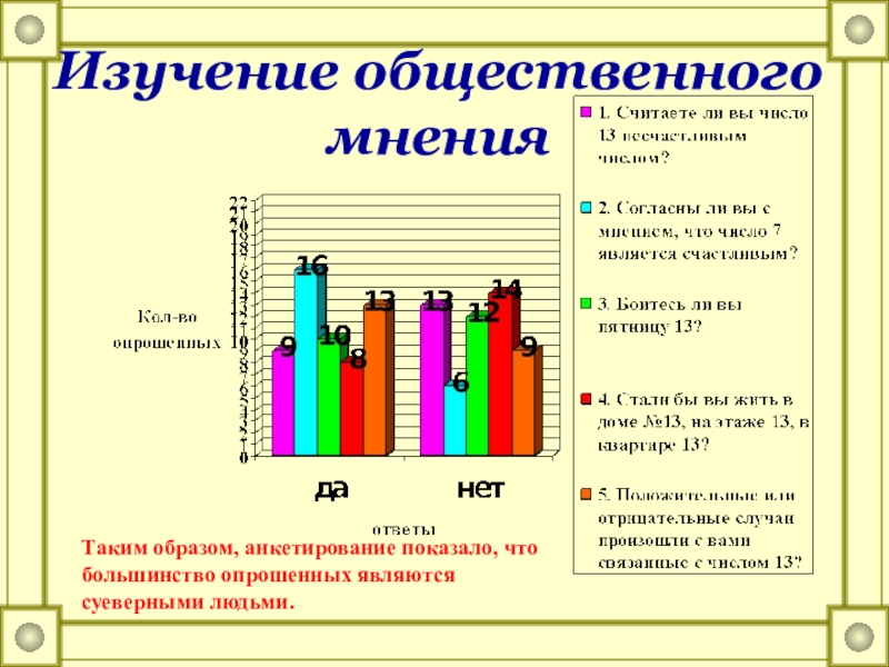 Таким образом, анкетирование показало, что большинство опрошенных являются суеверными