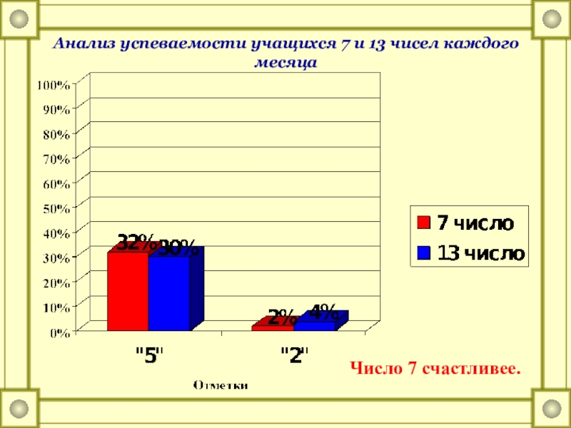 Слайд 16Анализ успеваемости учащихся 7 и 13 чисел каждого месяца