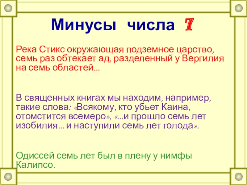 Слайд 20Минусы числа 7