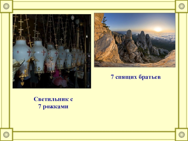 В религии : Особенно важным число 7 становится с развитием христианства: мир создается за 7 дней, в Храме Иерусалима имеется светильник с 7 рожками и есть легенда о 7 спящих братьях. Для нас число 7 сохранилось во многих устойчивых словосочетаниях, например, мы говорим о «книге за семью печатями» или «на седьмом небе». Мы знаем из средневековья семь смертных грехов: высокомерие, скупость, сладострастие, зависть, чревоугодие, ярость и лень. Или можно вспомнить о семи чудесах света.