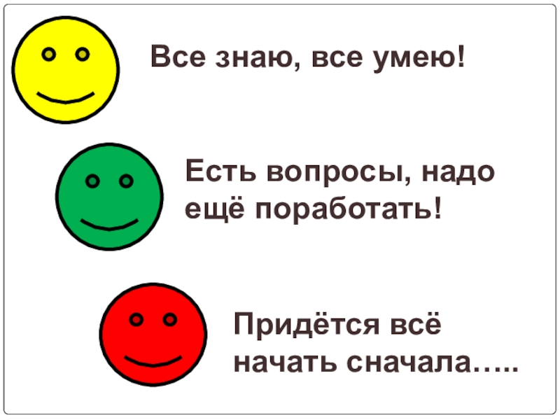Все знаю, все умею!Есть вопросы, надо ещё поработать!Придётся всё начать сначала…..