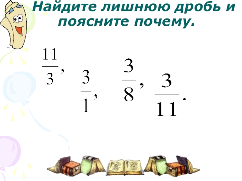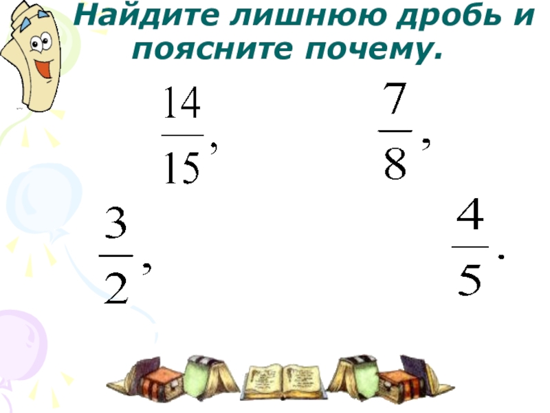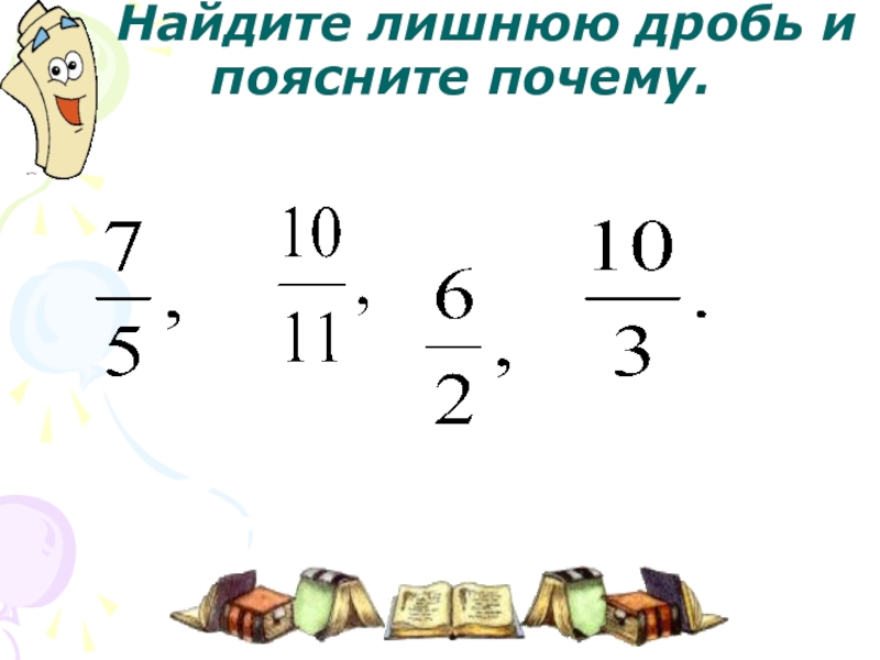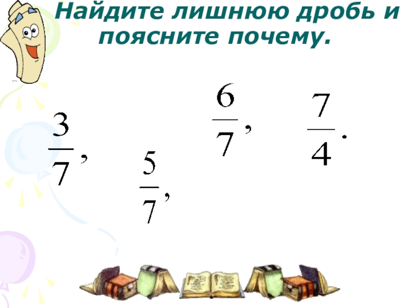 Слайд 6 Найдите лишнюю дробь и поясните почему.