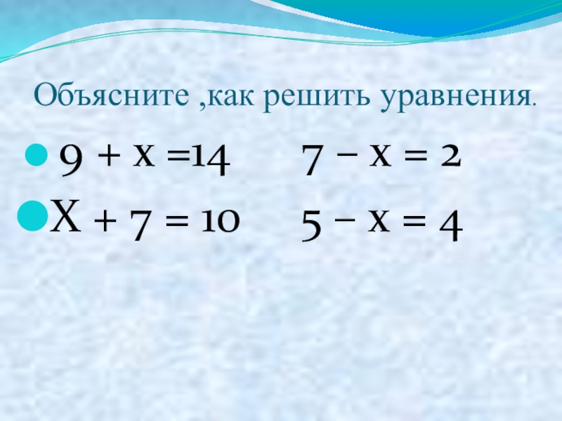 Объясните ,как решить уравнения. 9 + х =14   7 – х = 2