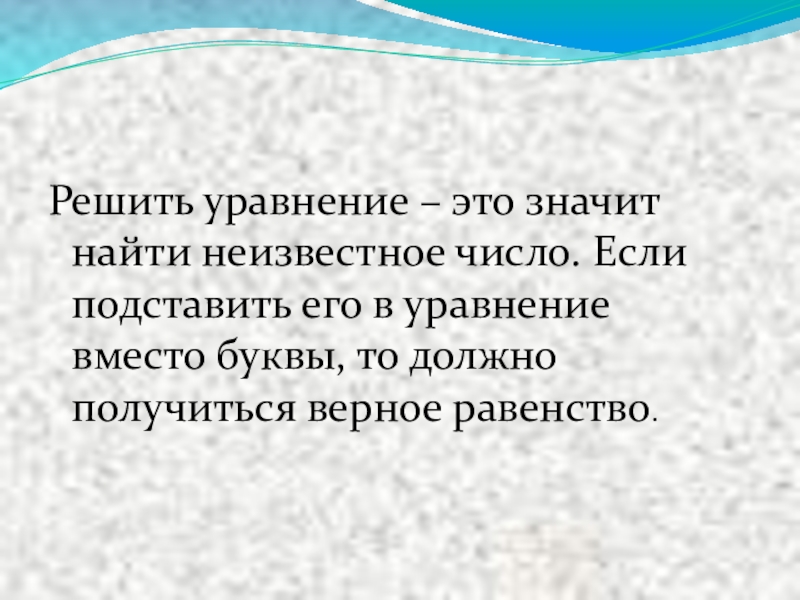 Решить уравнение – это значит найти неизвестное число. Если подставить его в уравнение вместо буквы, то должно