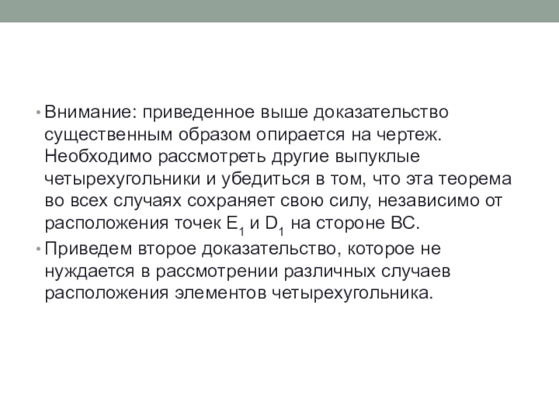 Слайд 16Внимание: приведенное выше доказательство существенным образом опирается на чертеж. Необходимо рассмотреть