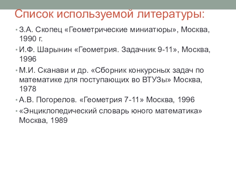 З.А. Скопец «Геометрические миниатюры», Москва, 1990 г.