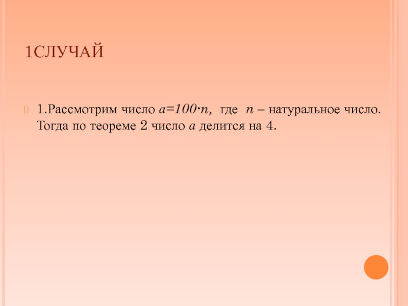 1.Рассмотрим число а=100∙n, где n – натуральное число. Тогда по теореме