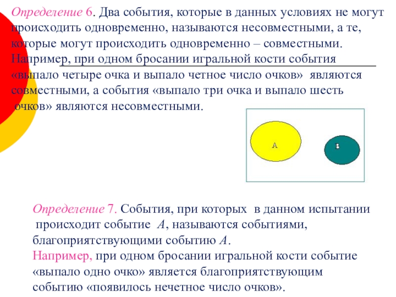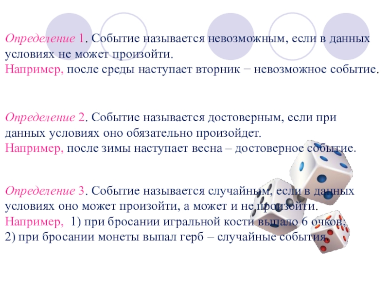 Например, 1) при бросании игральной кости выпало 6 очков;
