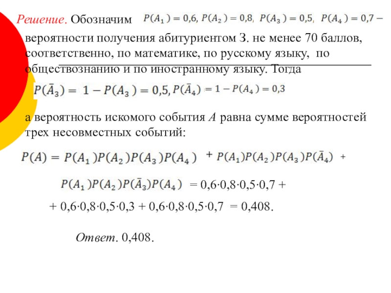 + 0,6∙0,8∙0,5∙0,3 + 0,6∙0,8∙0,5∙0,7 = 0,408.