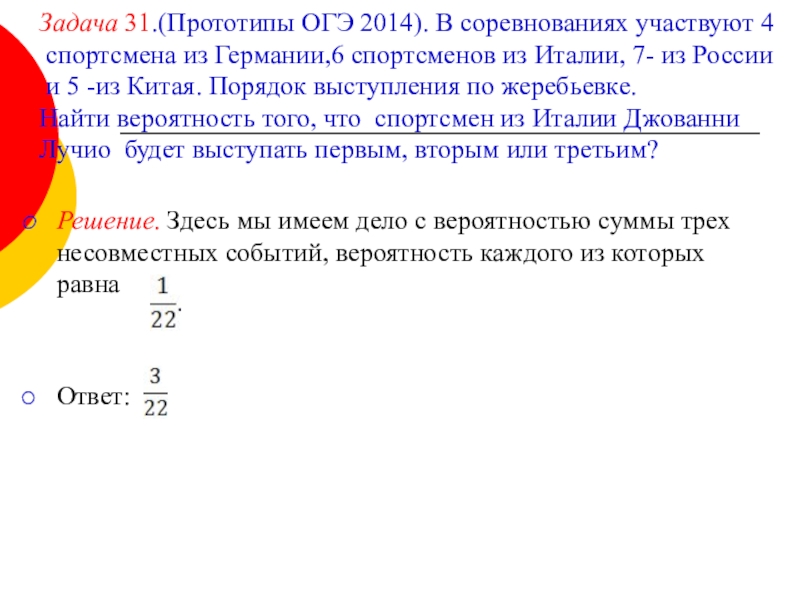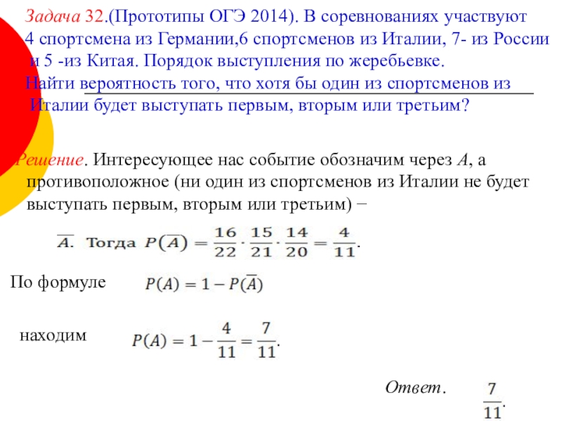 Задача 32.(Прототипы ОГЭ 2014). В соревнованиях участвуют