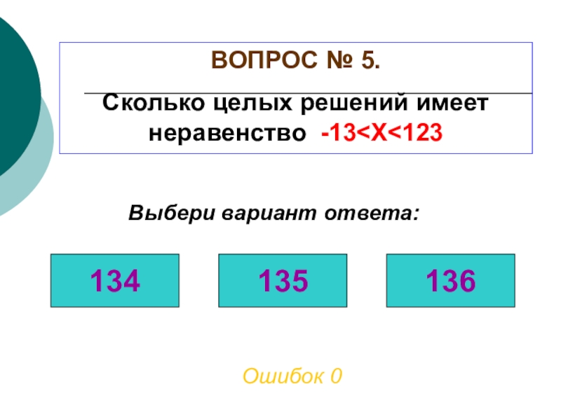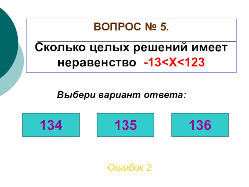 ВОПРОС № 5. Сколько целых решений имеет неравенство -13