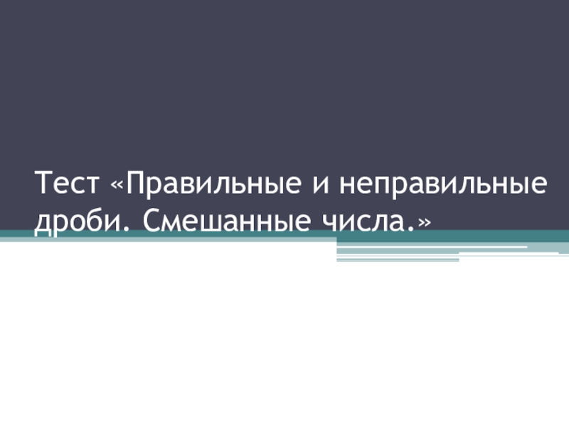 Слайд 1Тест «Правильные и неправильные дроби. Смешанные числа.»