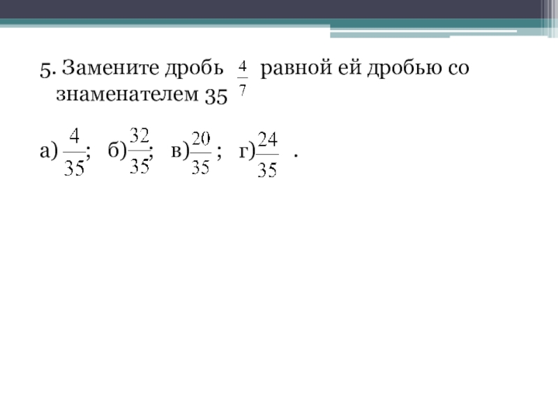 5. Замените дробь    равной ей дробью со знаменателем 35а)   ;  б)