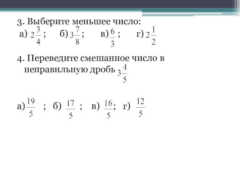 Тест «Правильные и неправильные дроби. Смешанные числа.»