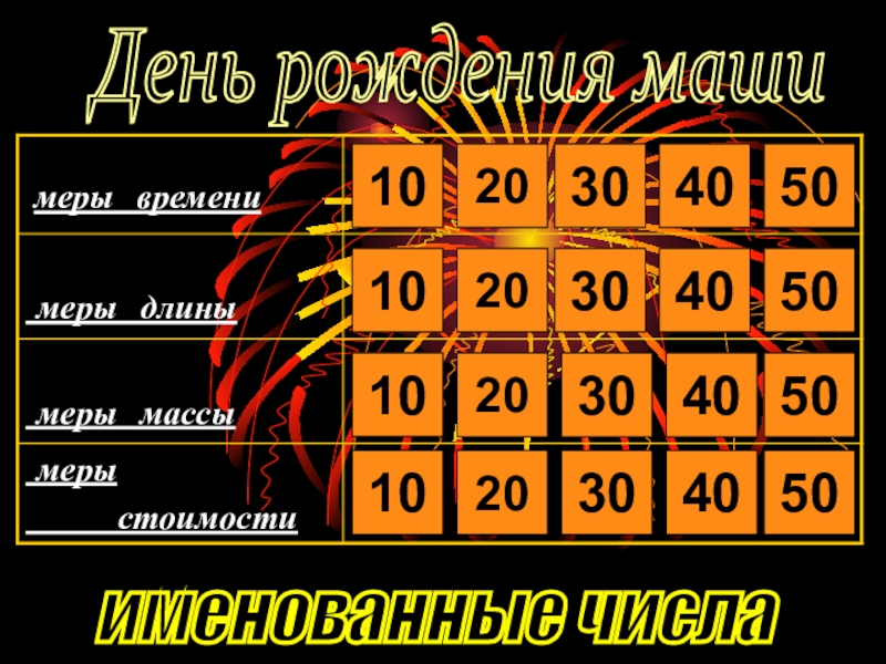 1020304050102020201010303030404040505050День рождения маши именованные числа