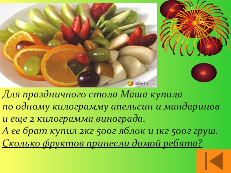 Для праздничного стола Маша купила        по одному килограмму апельсин и